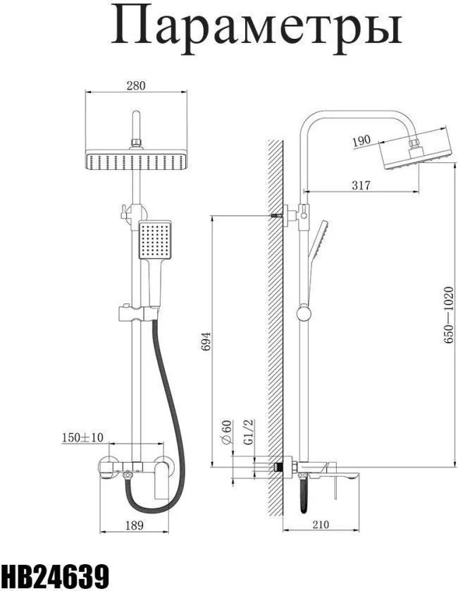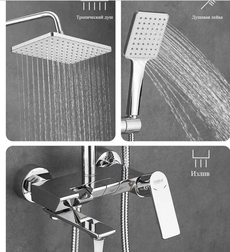 Душевая стойка с выдвижным изливом Haiba HB24639, материал латунь, цвет хром.