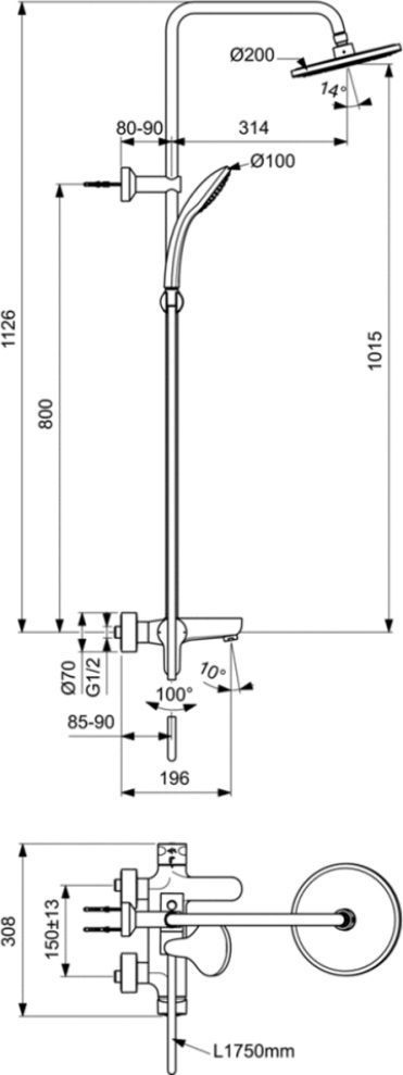 Характеристики душевая система с изливом Ideal Standard (BC525AA)