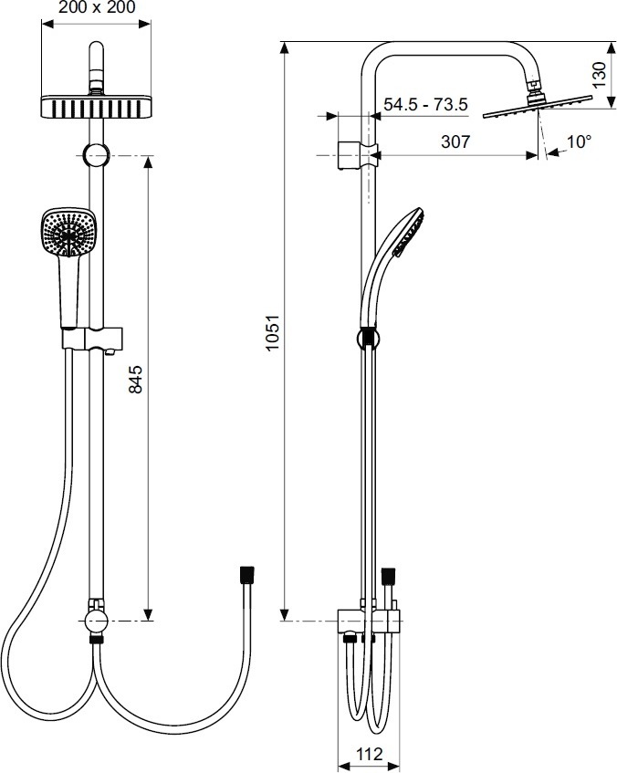 - IDEALRAIN CUBE Душевая система для установки с настенным смесителем
