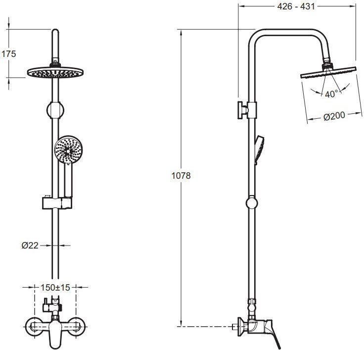- Можно отрегулировать по высоте положение отдельных частей стойки / совместимость с проточным водонагревателем
