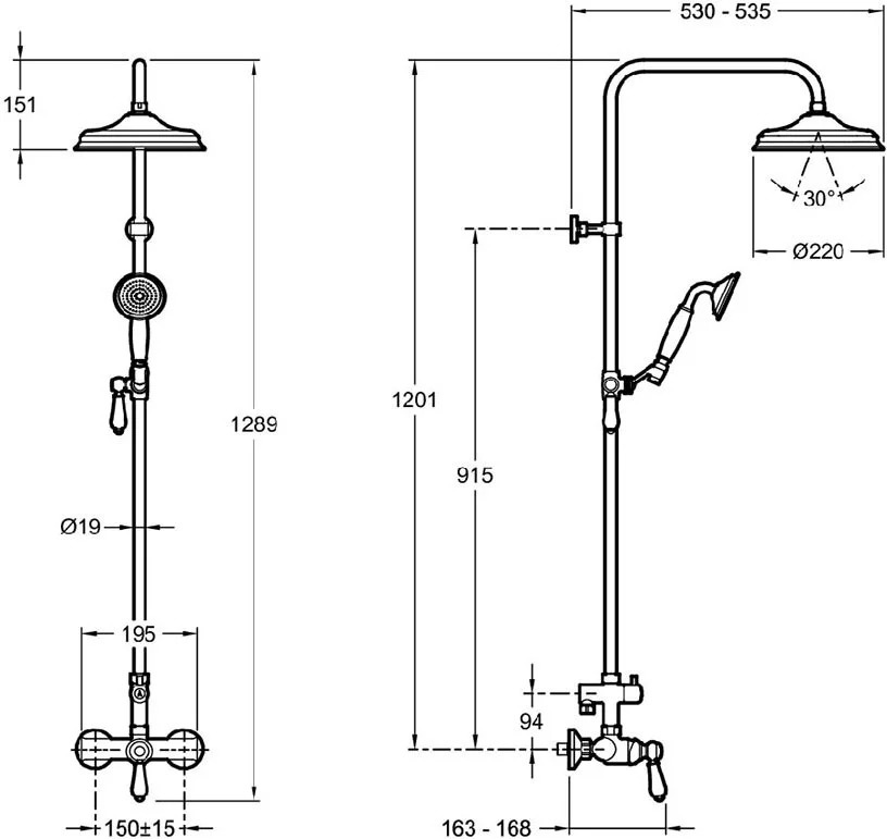 - Размер верхнего душа: 22 см