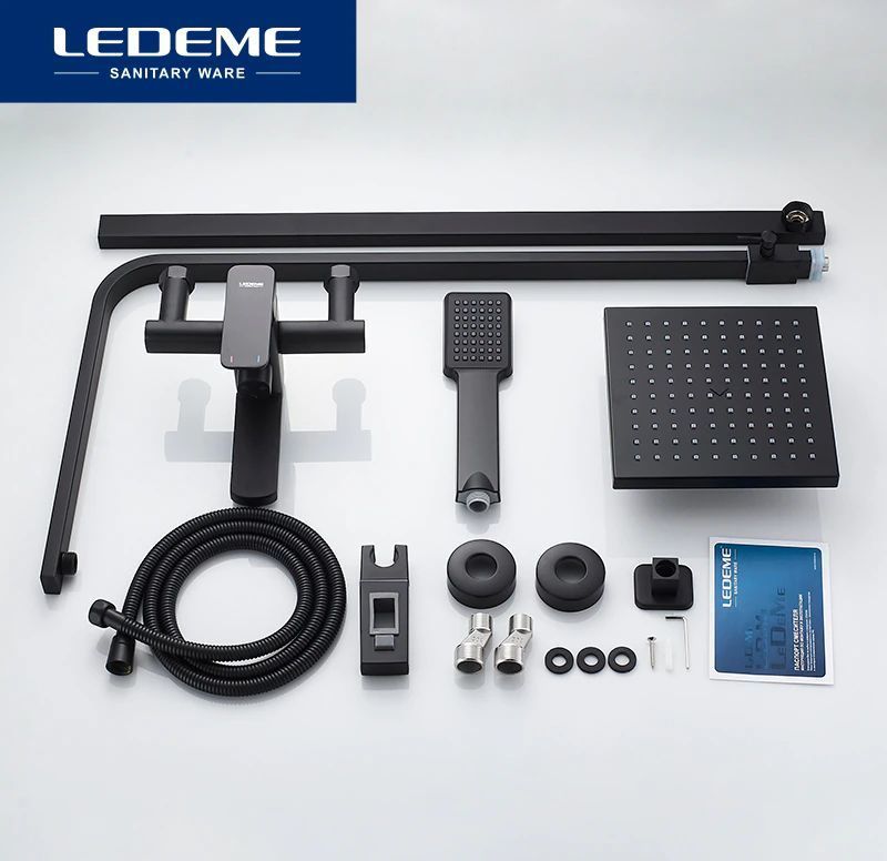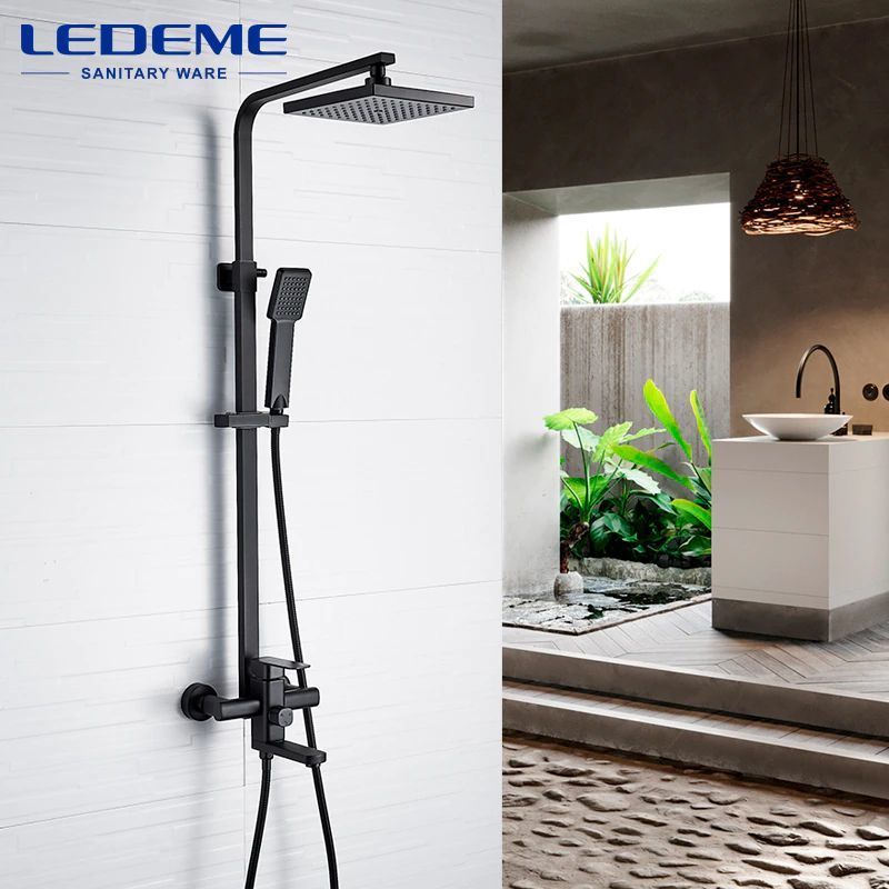 Душевая система с выдвижным изливом для ванны Ledeme L2433B, количество режимов душевой лейки - 1, длина душевого шланга - 150 см, материал - латунь, цвет - черный матовый.