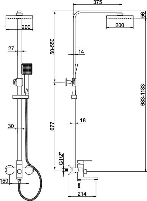 Характеристики душевая система с изливом Ledeme (L2433B)