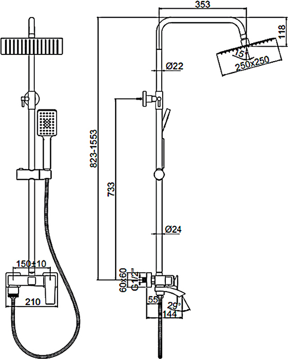 Характеристики душевая система с изливом Ledeme (L2478U)