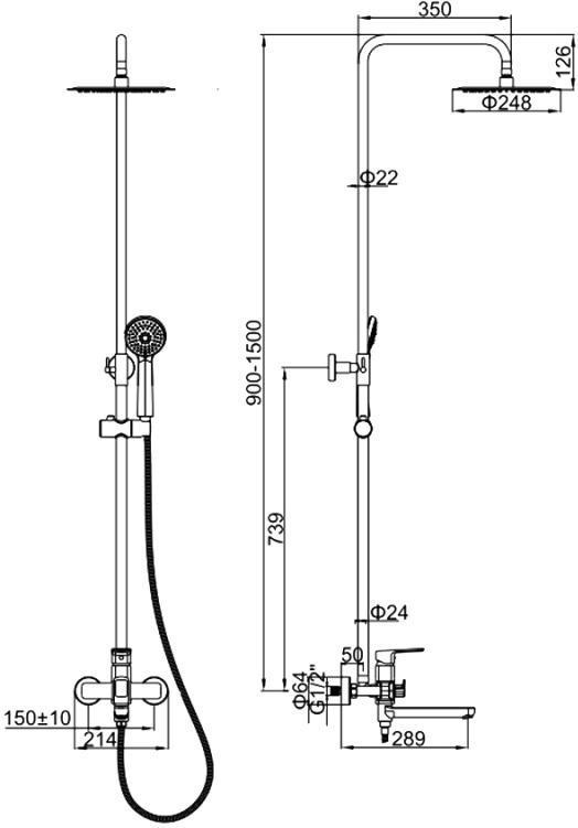Характеристики душевая система с изливом Ledeme (L2480D)