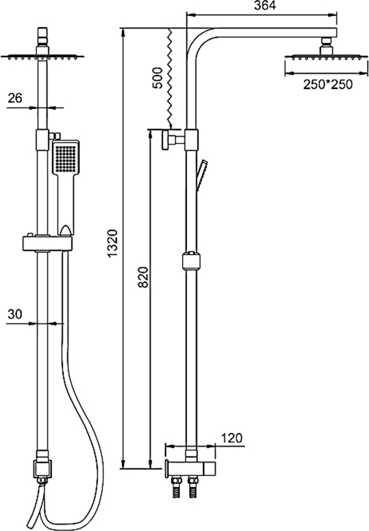 Характеристики душевая система без смесителя Ledeme (L72400-1)