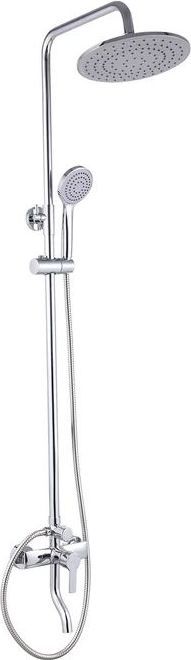 Смеситель для ванны с верхним душем, однозахватный, латунь, никель-хромовое покрытие, керамический картридж 35 мм, пластиковый аэратор; металлическая верхняя лейка, диаметр 230 мм; ручная лейка из ABS-пластика, диаметр 100 мм, 1 режим, держатель для ручной лейки - ABS-пластик; 3-х режимный керамический дивертор; шланг в металлической оплетке 1,5 м; штанга для душа - нержавеющая сталь с возможностью регулировки по высоте. В комплекте эксцентрики с отражатели, комплект уплотнителей. Упаковка: картонная коробка.