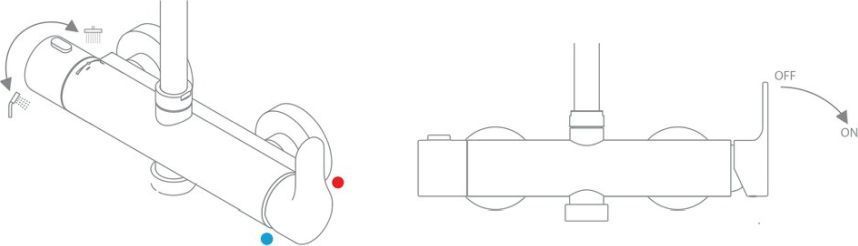 - конструкция смесителя: CoolFeel - регулятор температуры слева уменьшает чрезмерный нагрев поверхности смесителя