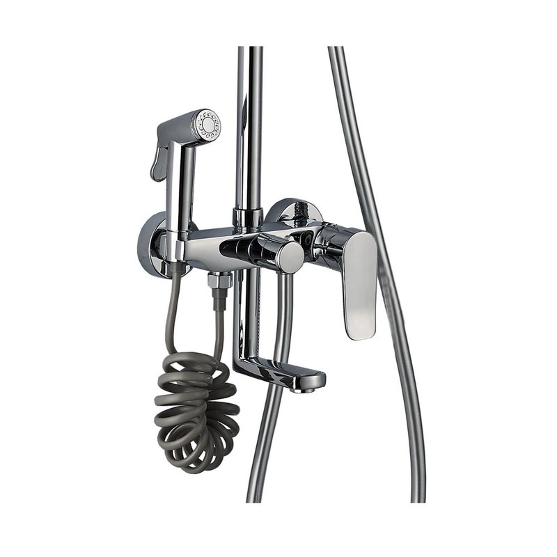 Душевая стойка с изливом и гигиеническим душем EvaGold Borneo EG400059. Материал - латунь, цвет - хром.