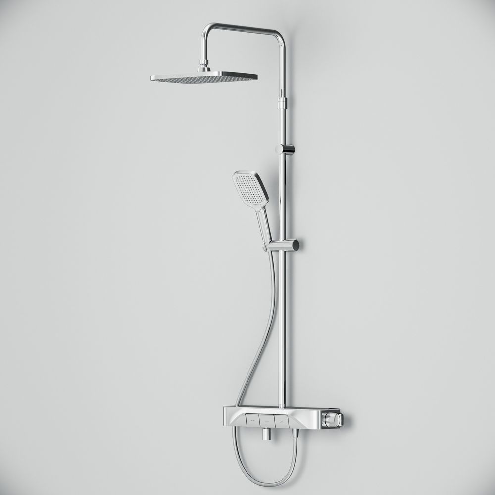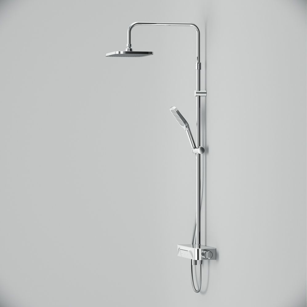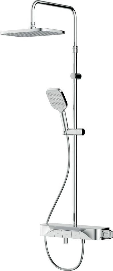 - Интуитивно понятное управление: всего одна удобная ручка для настройки температуры и потока воды. Благодаря специально спроектированной эргономичной ручке вы можете управлять душевой системой даже с мыльными руками. Переключение потоков воды осуществляется нажатием клавиши.