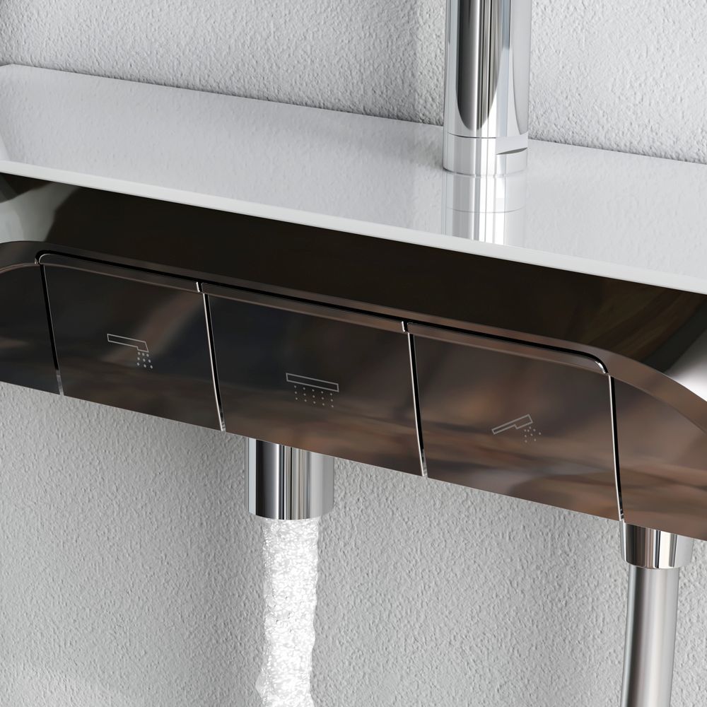 - Еще больше места для хранения: смеситель выполнен в виде вместительной полочки. Внушительный размер полки (40 см.) позволяет хранить все любимые средства под рукой, а эстетичный силуэт станет настоящим украшением современной ванной комнаты.