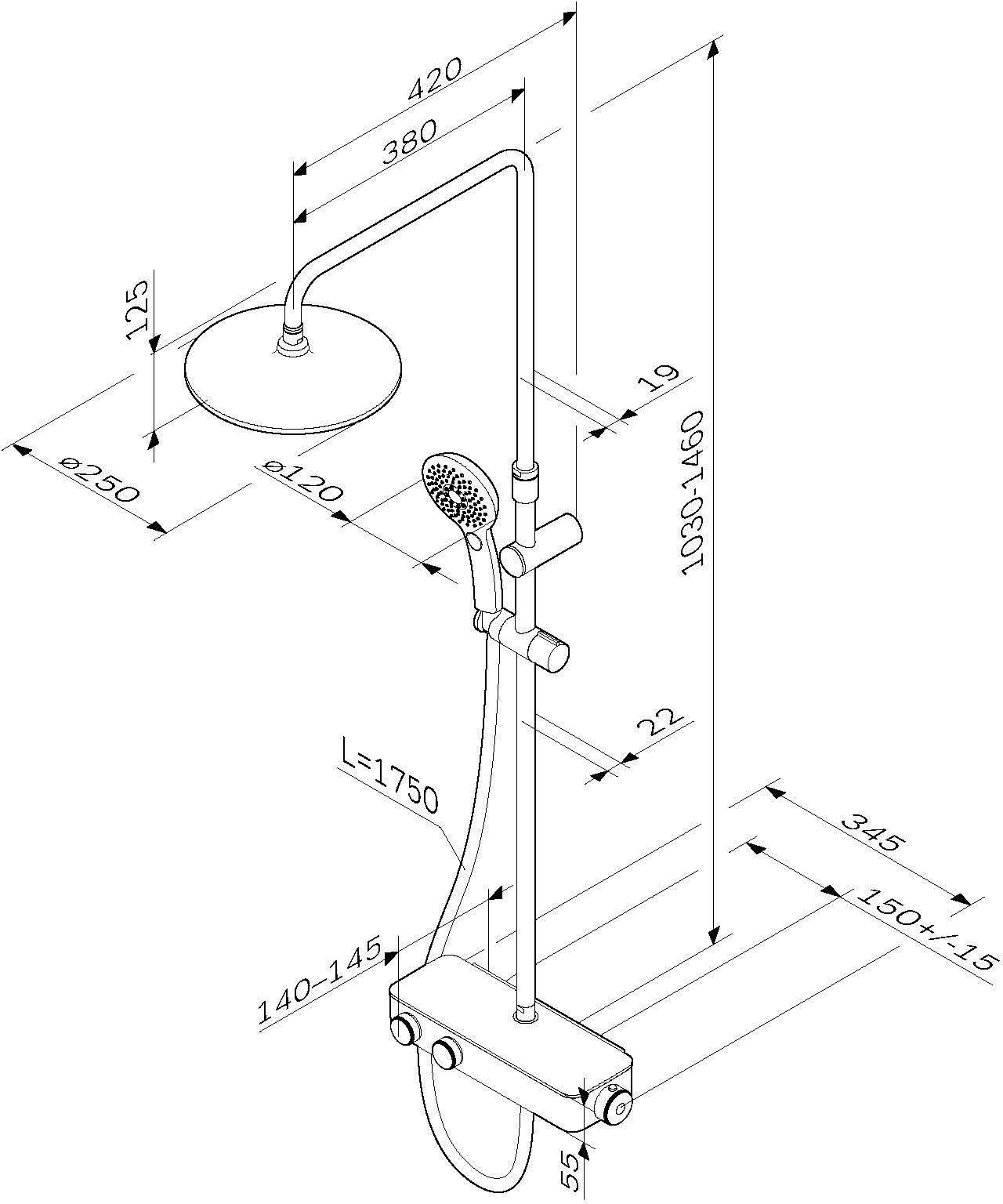 Характеристики душевая система без излива AM.PM (F0750A400)