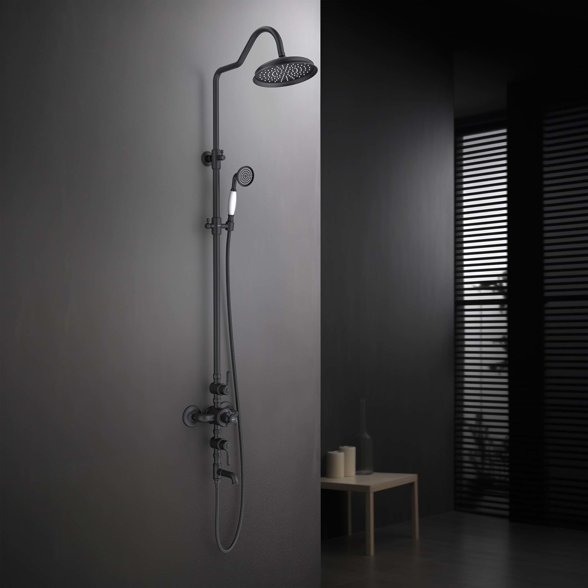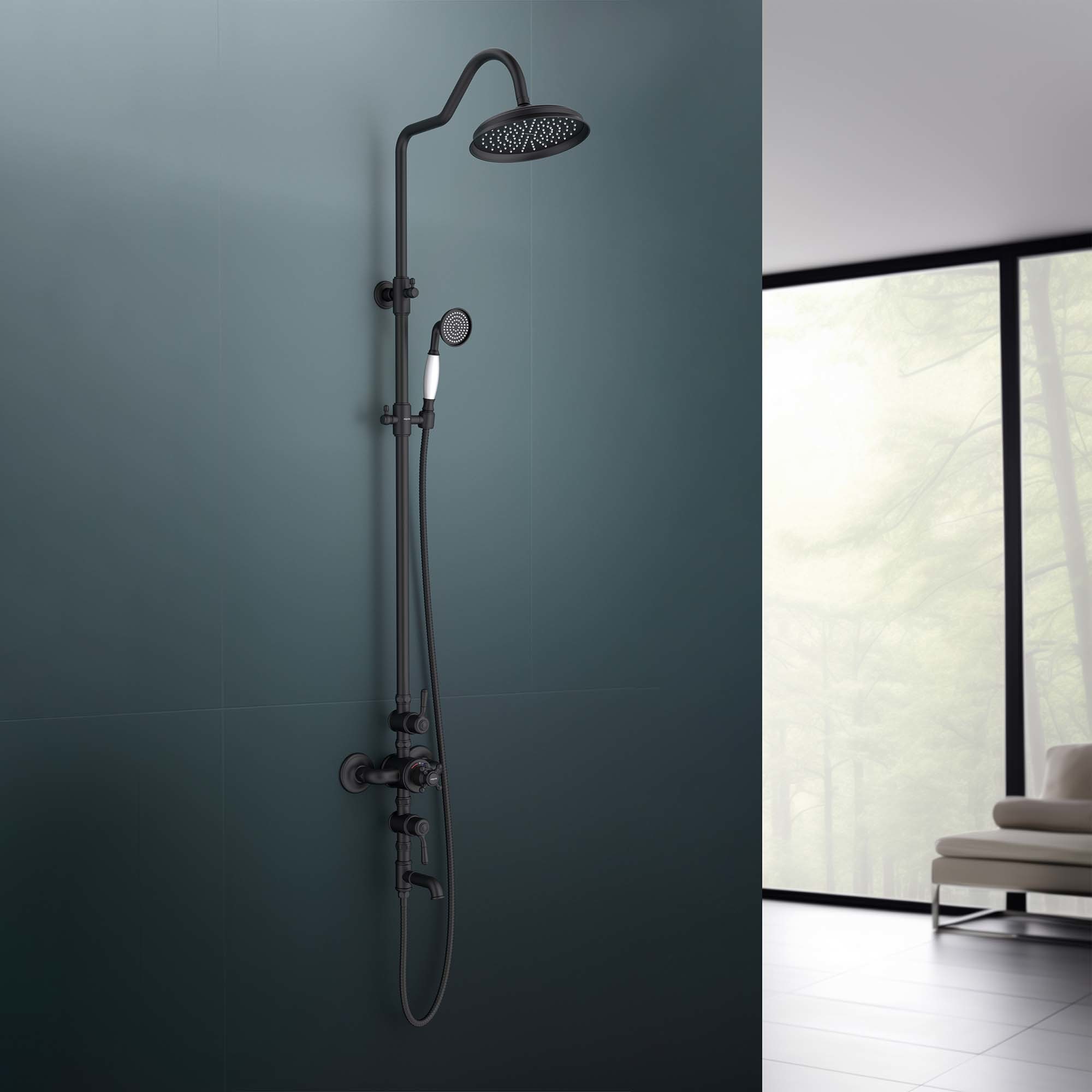 Душевая стойка с термостатом Aquatek Классик AQ2543MB, чёрный матовый