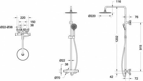 WATERFALL душевая система с термостатическим смесителем для душа. Верхний душ: 220 mm