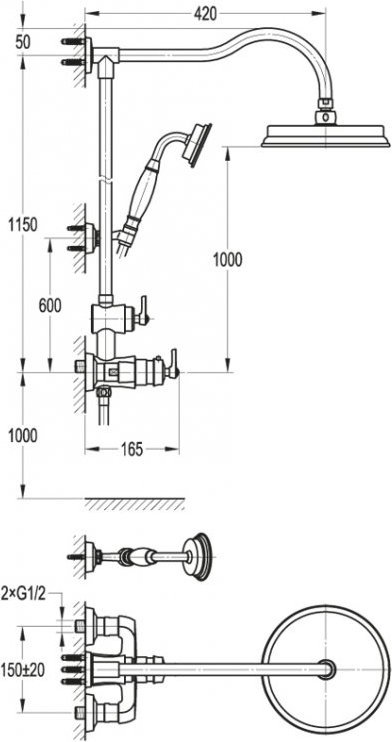 Характеристики душевая система без излива Cezares (LIBERTY-F-CD-T-01)