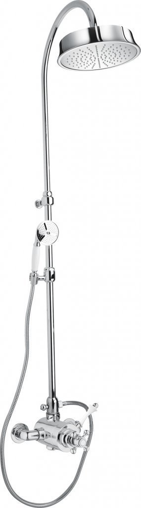 Душевая стойка с термостатом Cezares MARGOT-CD-T-01-Bi, материал - латунь, цвет - хром, ручки - белые.