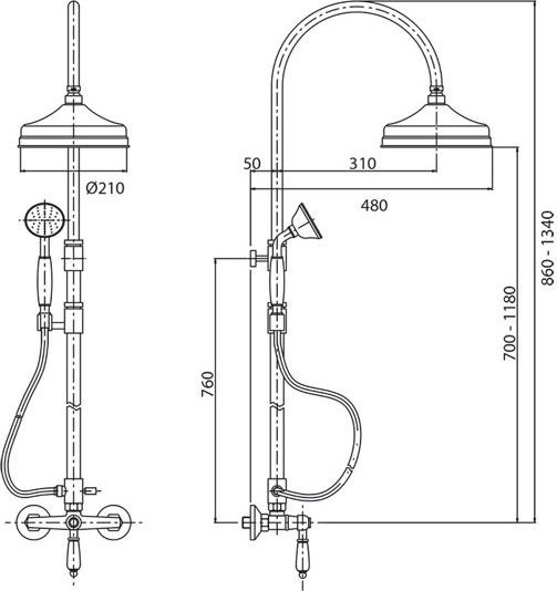 - Оснащение: душевая лейка, шланг для душа, держатель душа, смеситель термостатический