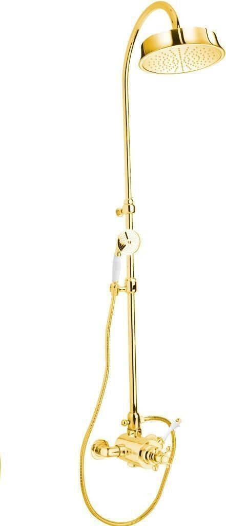 Душевая стойка с термостатом Cezares MARGOT-CD-T-03/24-Bi, материал - латунь, цвет - золото 24 карат, ручки - белые.