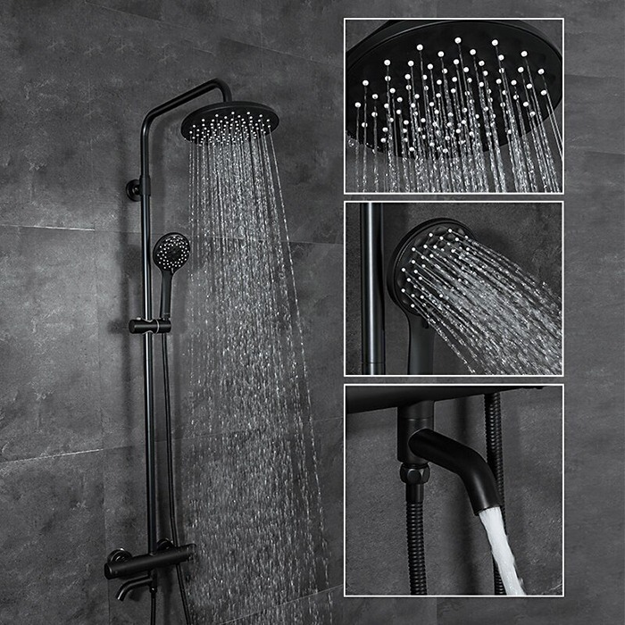 Душевая стойка с термостатом и выдвижным изливом Gappo G2490-6, материал - латунь, цвет - черный.