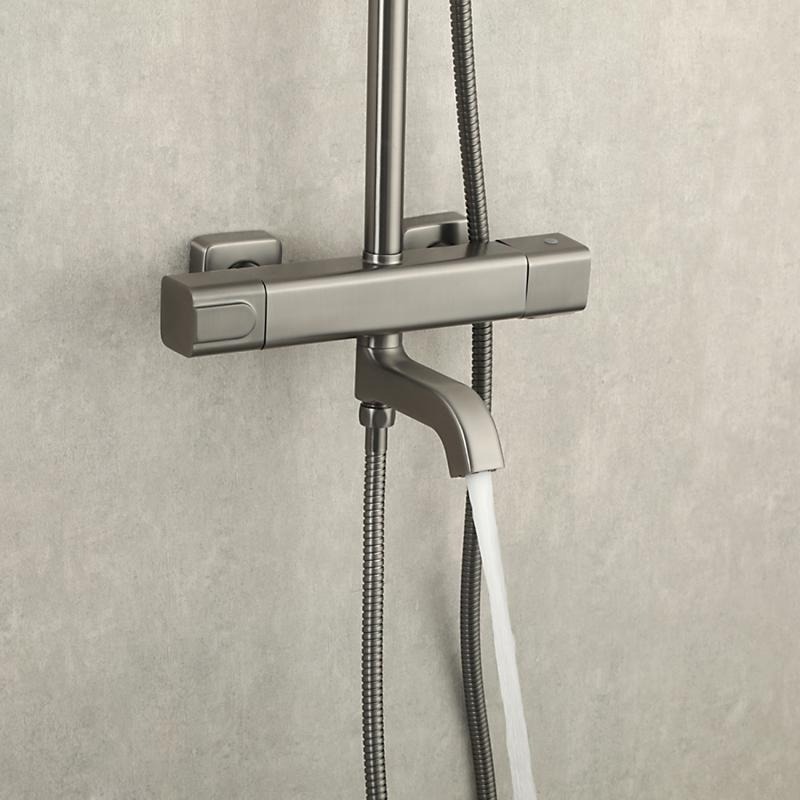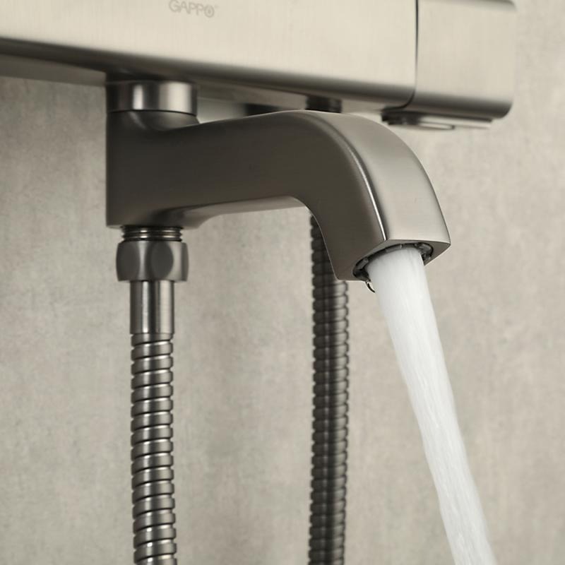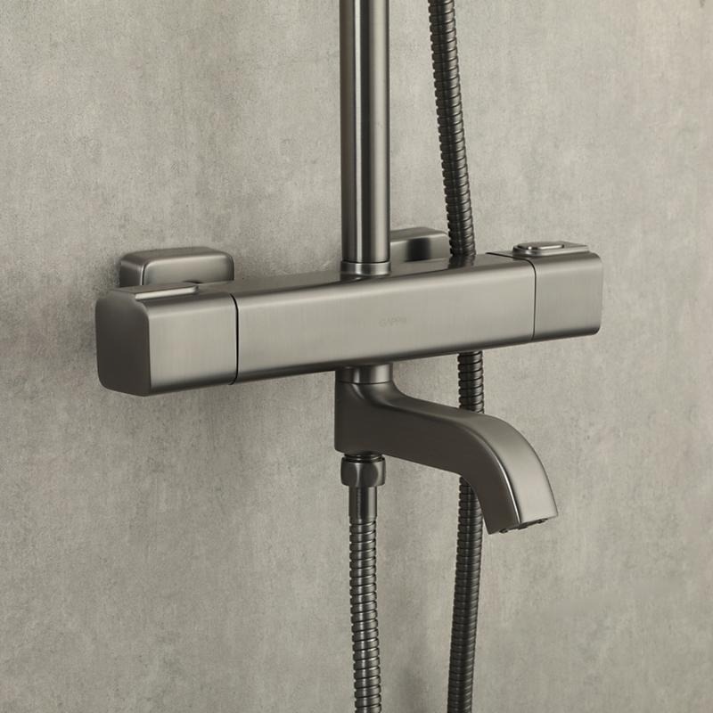 Душевая стойка с термостатом и выдвижным изливом Gappo G2491-9, материал - латунь, цвет - оружейная сталь.