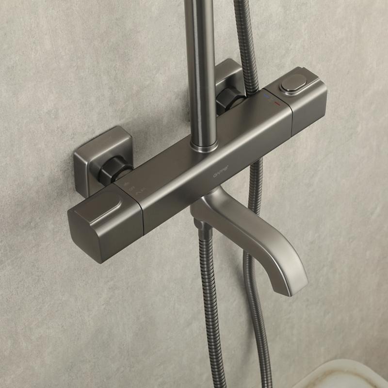 Душевая стойка с термостатом Gappo G2491-9, оружейная сталь