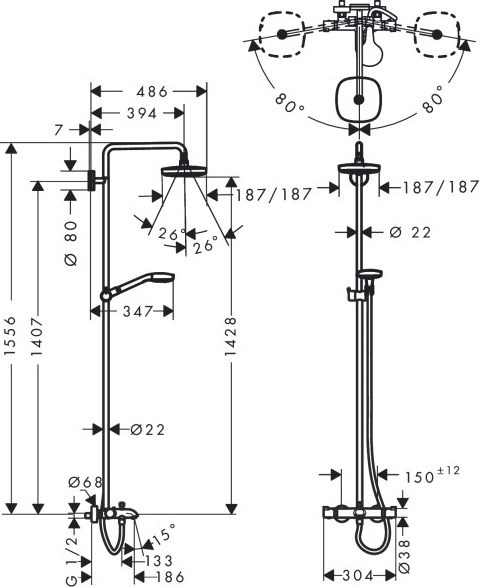 Характеристики душевая система с изливом Hansgrohe (27352400)