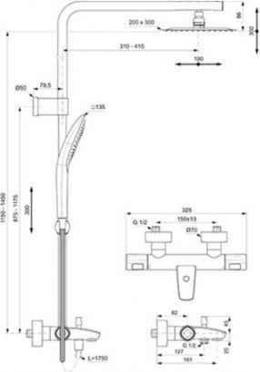 Характеристики душевая система с изливом Ideal Standard (A7591AA)