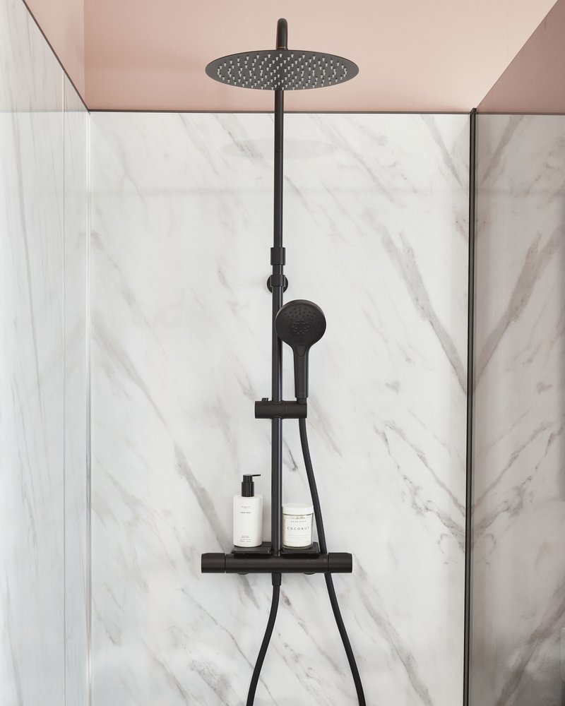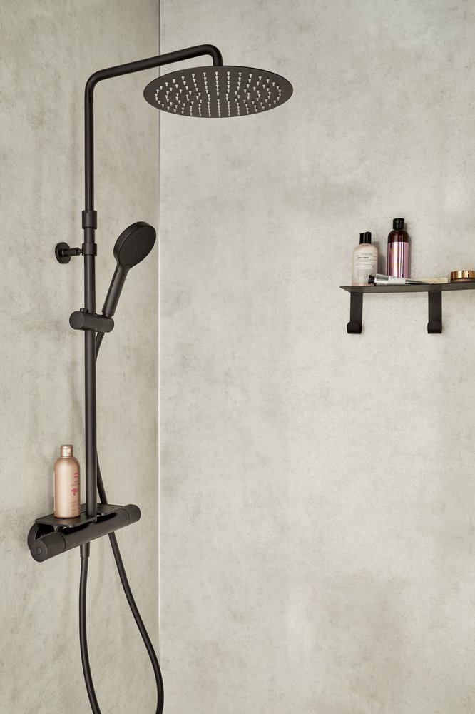 Душевая стойка с термостатом Jacob Delafon Metro E26589-BL, материал - латунь, цвет - черный матовый.