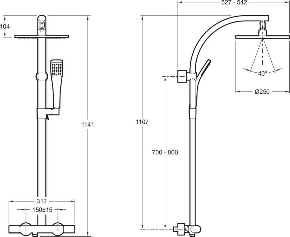 - Размер верхнего душа: 25 см