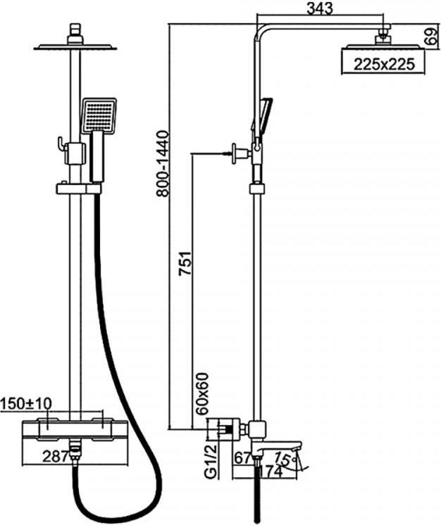 Характеристики душевая система с изливом Ledeme (L2424D)