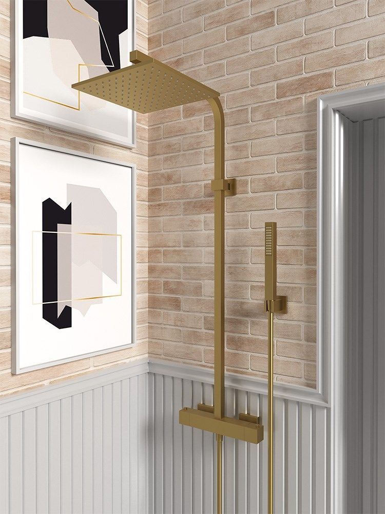 Душевая система для душа с термостатом Paini Dax-R 84PJ689TH, материал - латунь, цвет - матовое золото.