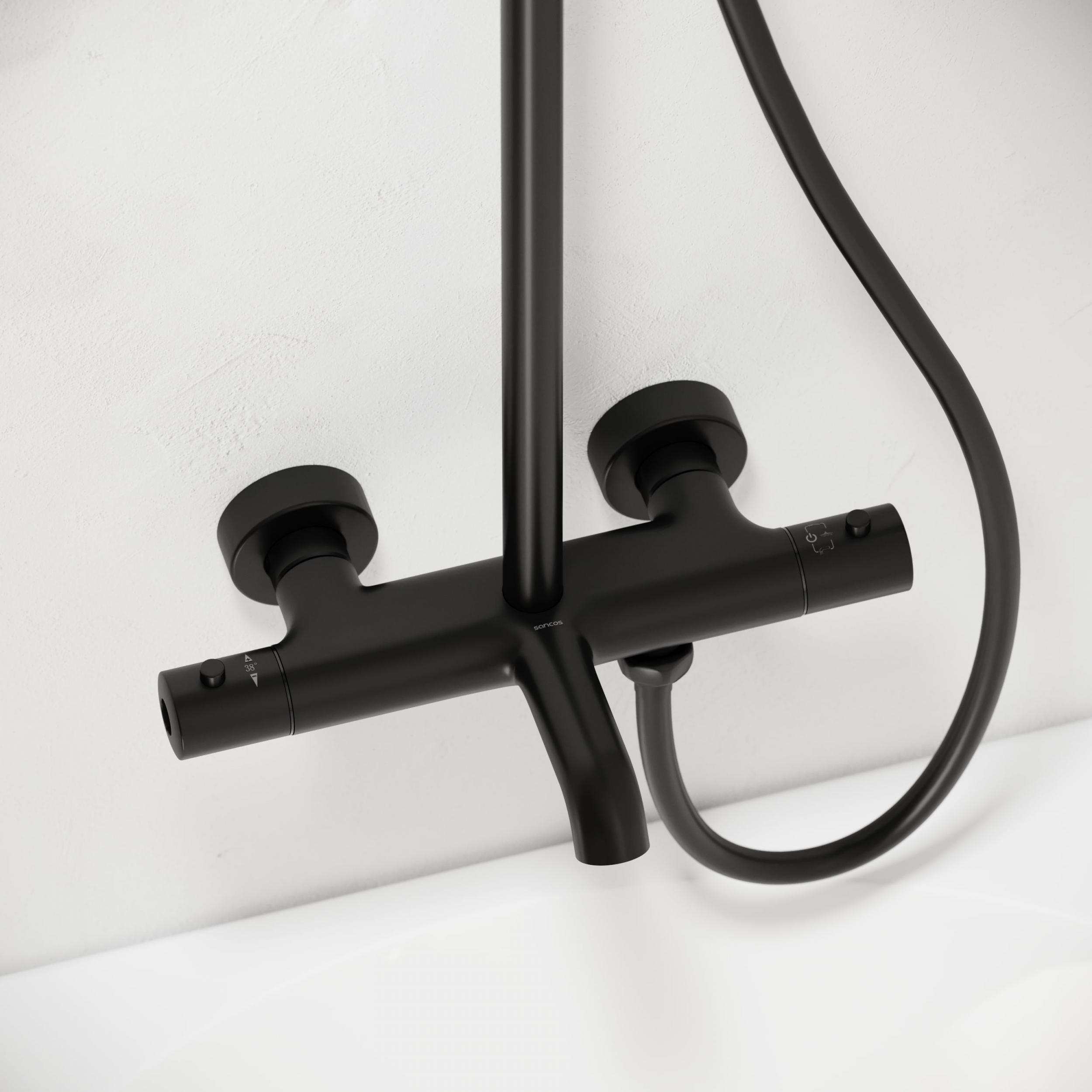 Душевая стойка с термостатом Sancos Game SC3001LMB, чёрный матовый