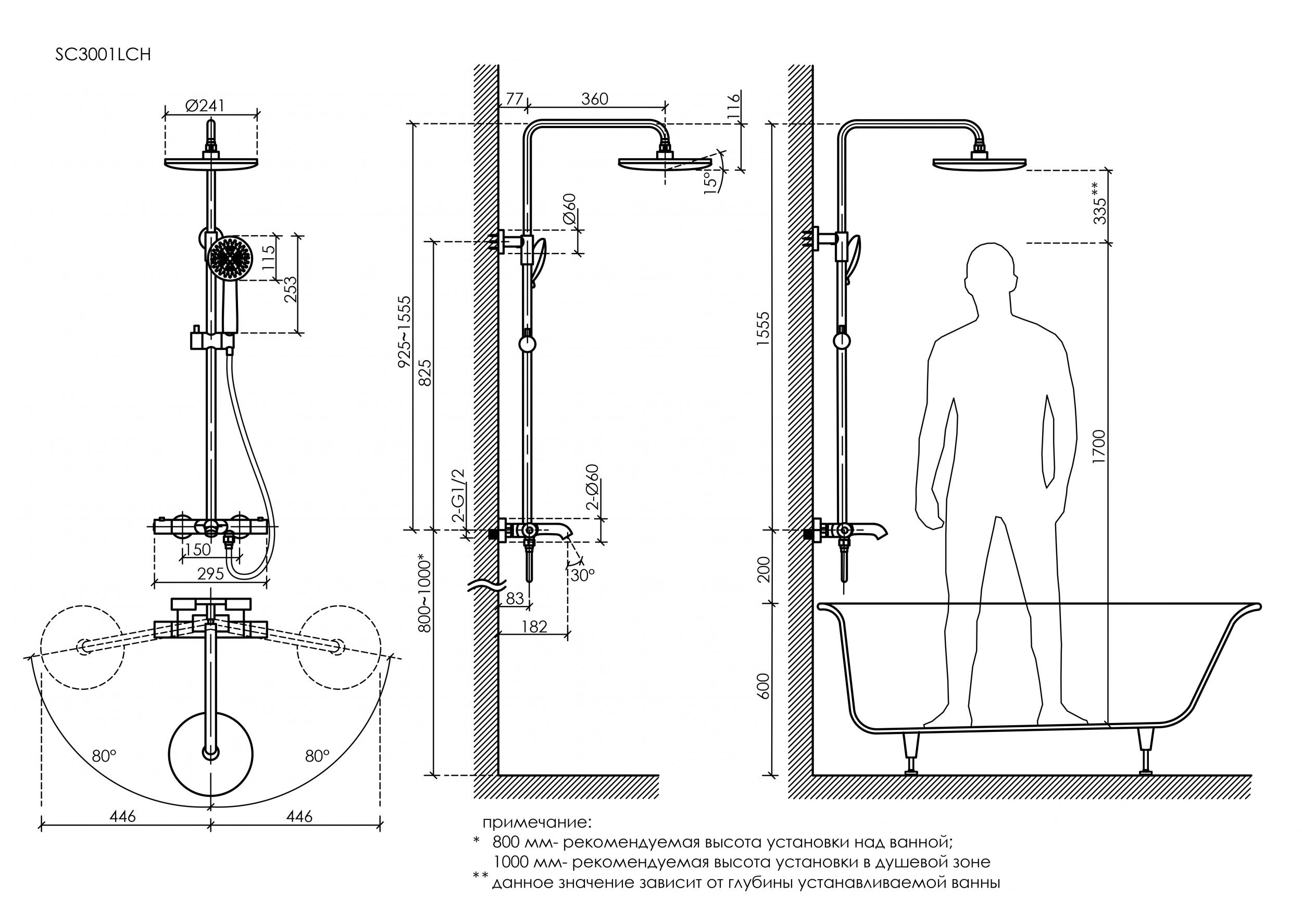 Описание душевая система с изливом Sancos SC3001LMB