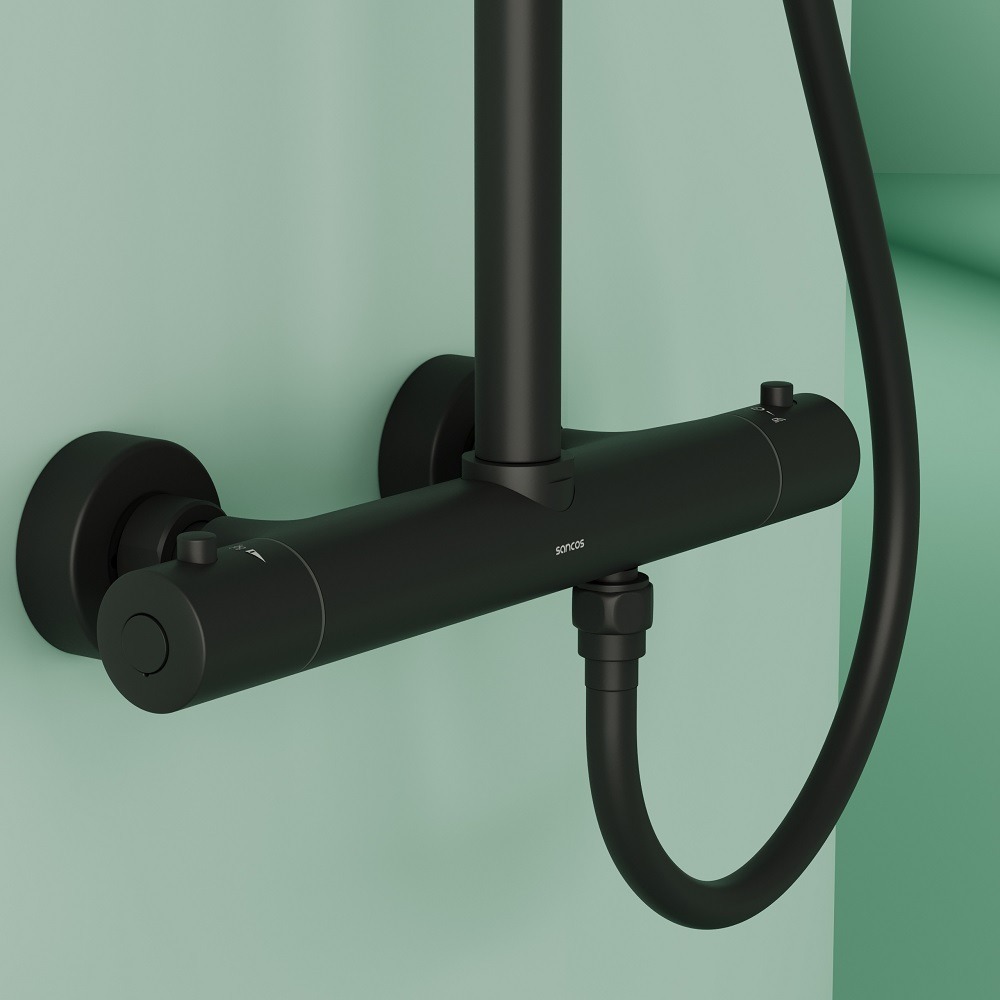 Душевая стойка с термостатом Sancos Game SC3002MB, чёрный матовый