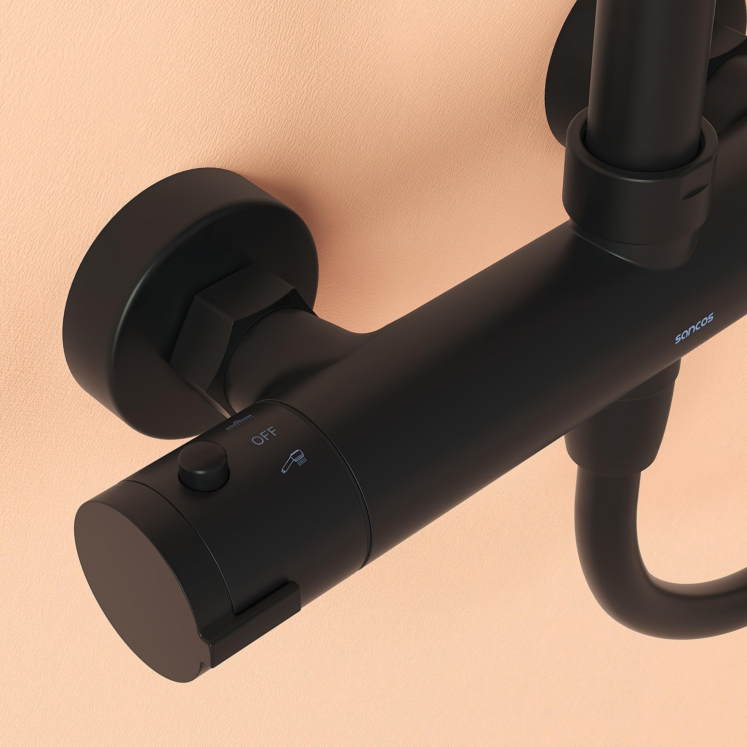 Душевая стойка с термостатом Sancos Kanedo SC7100MB, материал - латунь, цвет - чёрный матовый.