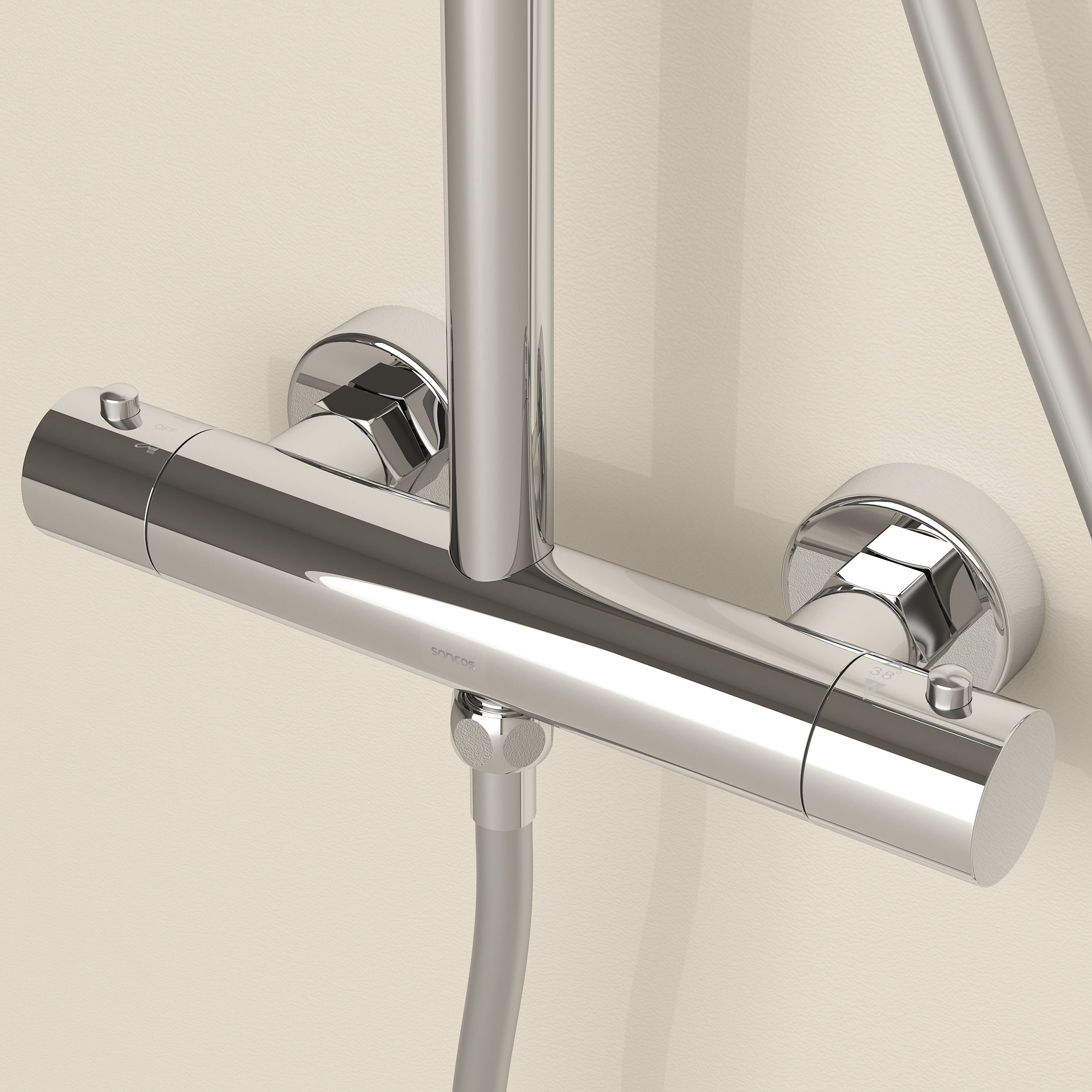 Душевая стойка с термостатом Sancos Teo SC11001CH, материал - латунь, цвет - хром.
