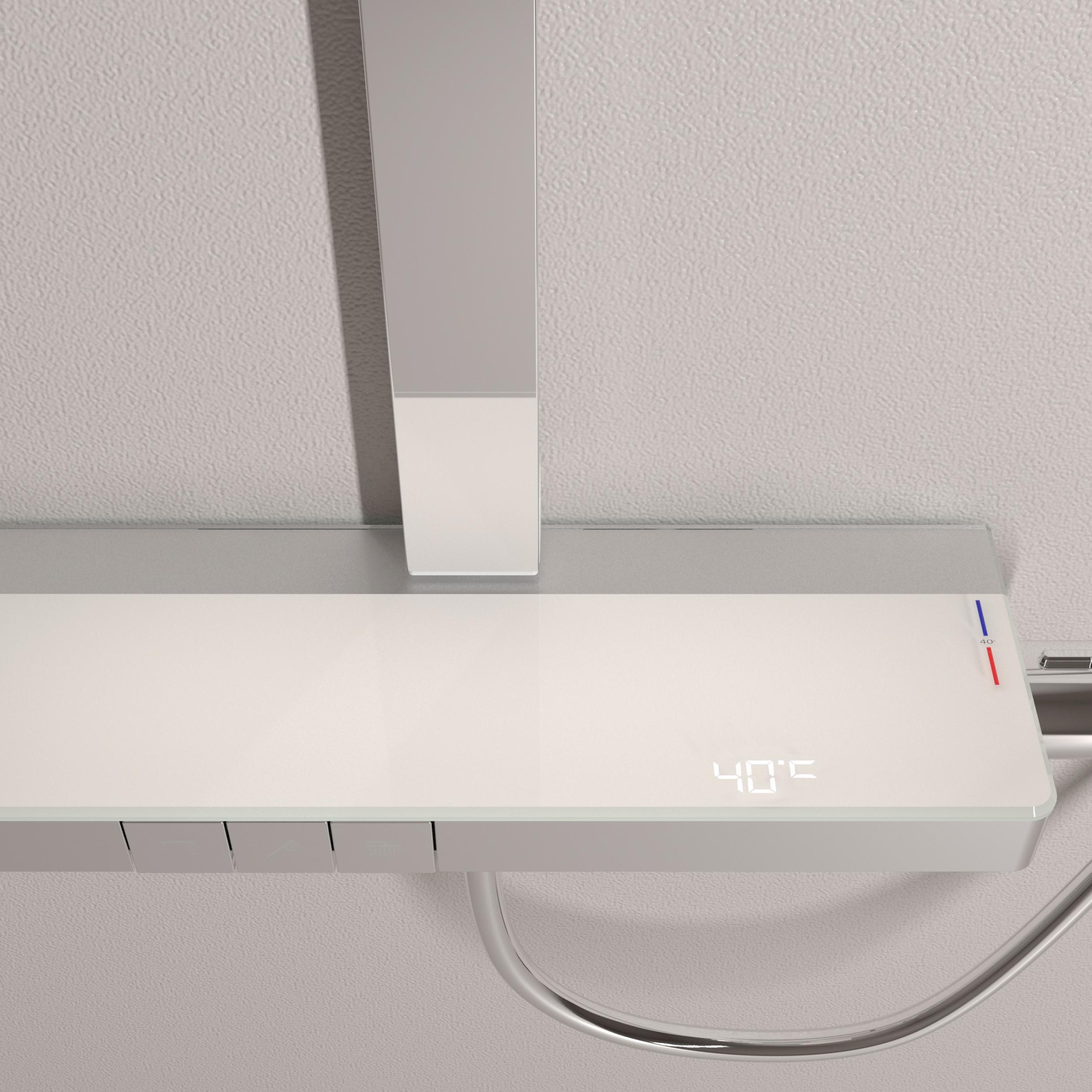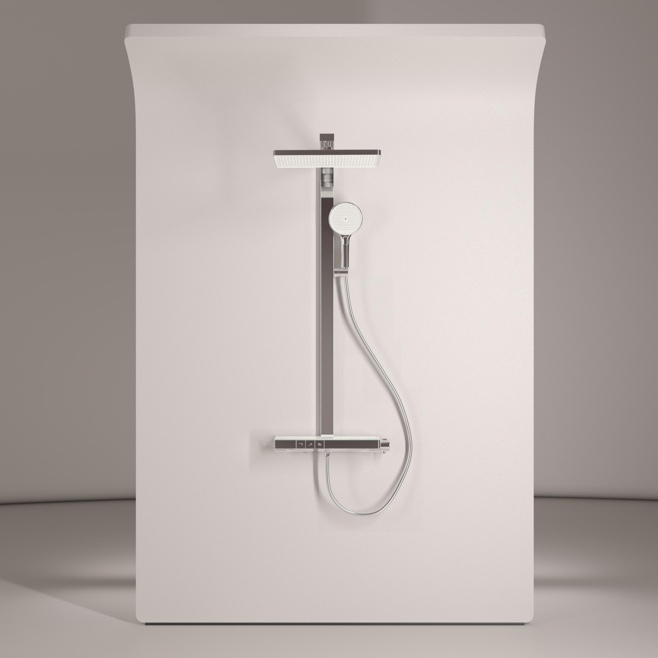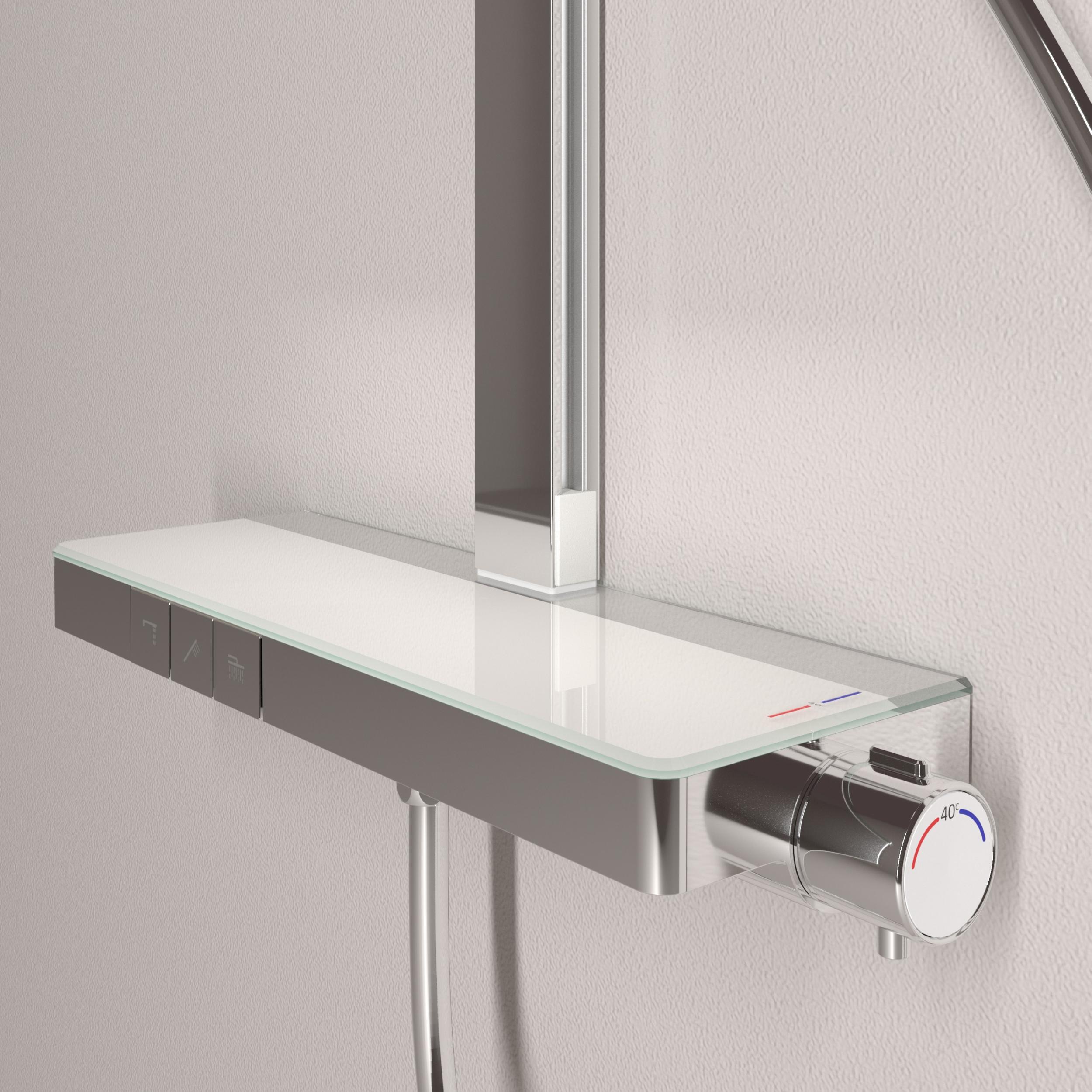 - Душевая система с термостатическим смесителем и встроенным изливом в корпус смесителя