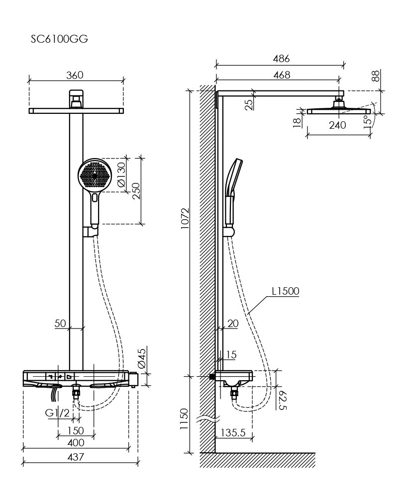 Душевая стойка с термостатом Sancos Vos SC6100GG, материал - латунь, цвет - вороненая сталь.