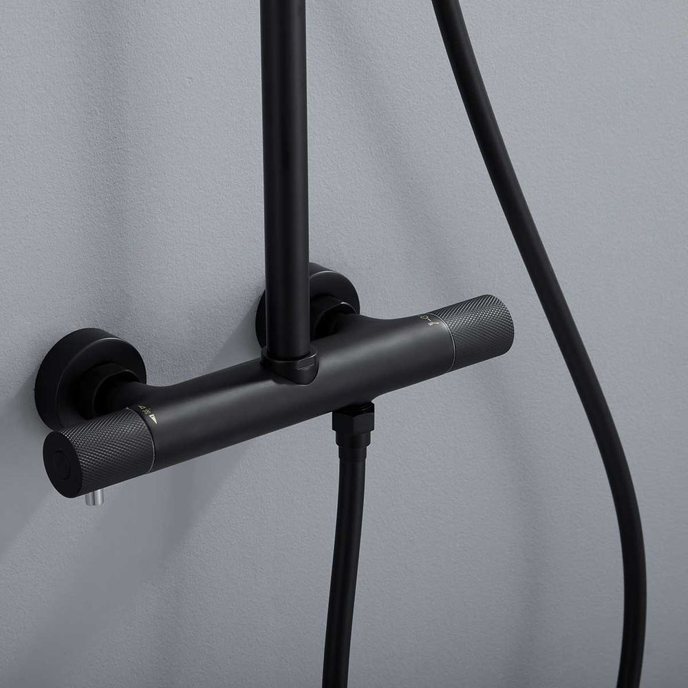 Душевая стойка с термостатом Vincea Desire VSFS-1D0TMB, материал - латунь, цвет - черный матовый.