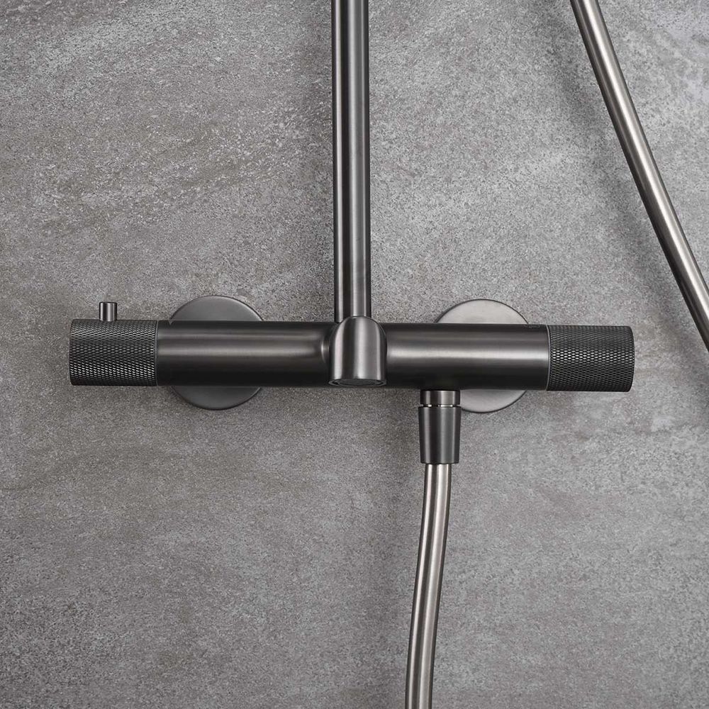 Душевая стойка с термостатом Vincea Desire VSFS-1D1TGM, материал - латунь, цвет - вороненая сталь.