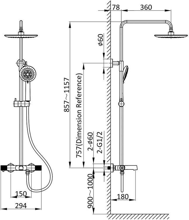 Характеристики душевая система с изливом Vincea (VSFS-1D1TGM)