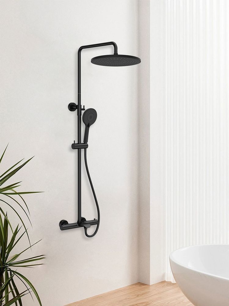 Душевая стойка с термостатом Vincea Esse VSFS-1E1TMB, черный матовый