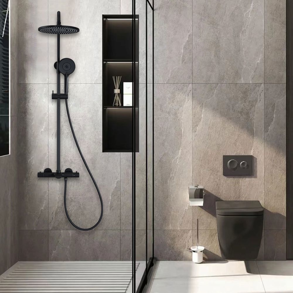 Душевая стойка с термостатом Vincea Esse VSFS-1E1TMBH, материал - латунь, цвет - черный матовый.