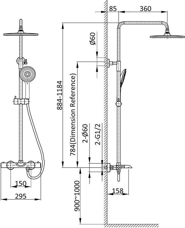 - Душевая стойка термостатическая c изливом