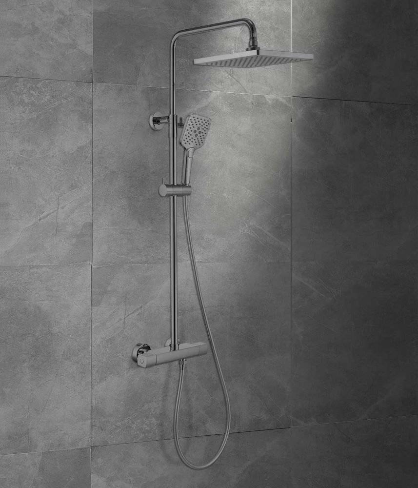 Душевая стойка с термостатом Vincea Next VSFS-1N0TGM, материал - латунь, цвет - вороненая сталь.