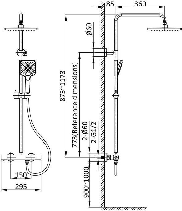 - Душевая стойка термостатическая без излива