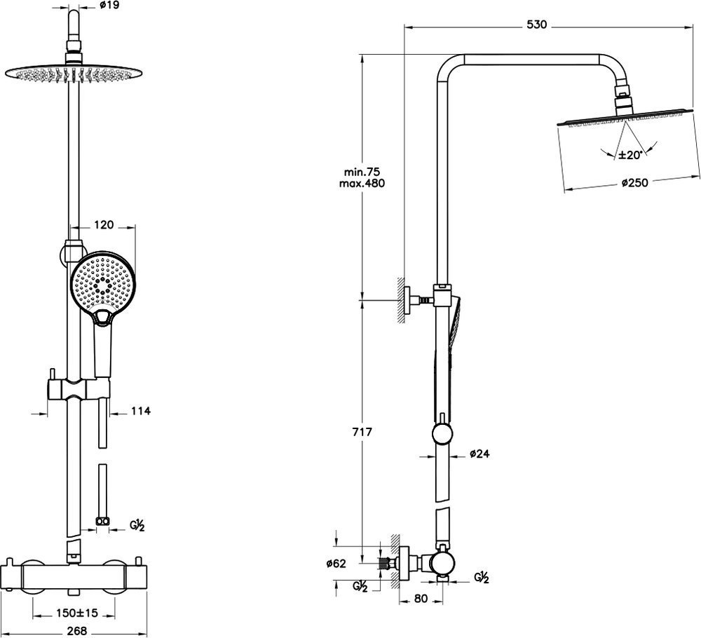 Душевая стойка с термостатом Vitra AquaHeat Bliss 250 A47201EXP