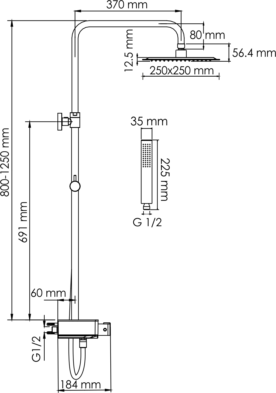 - Душевая насадка 250 x 250 мм, 112 форсунок, нержавеющая сталь