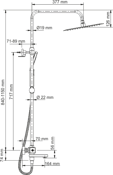 Характеристики душевая система с изливом WasserKraft (A19901)
