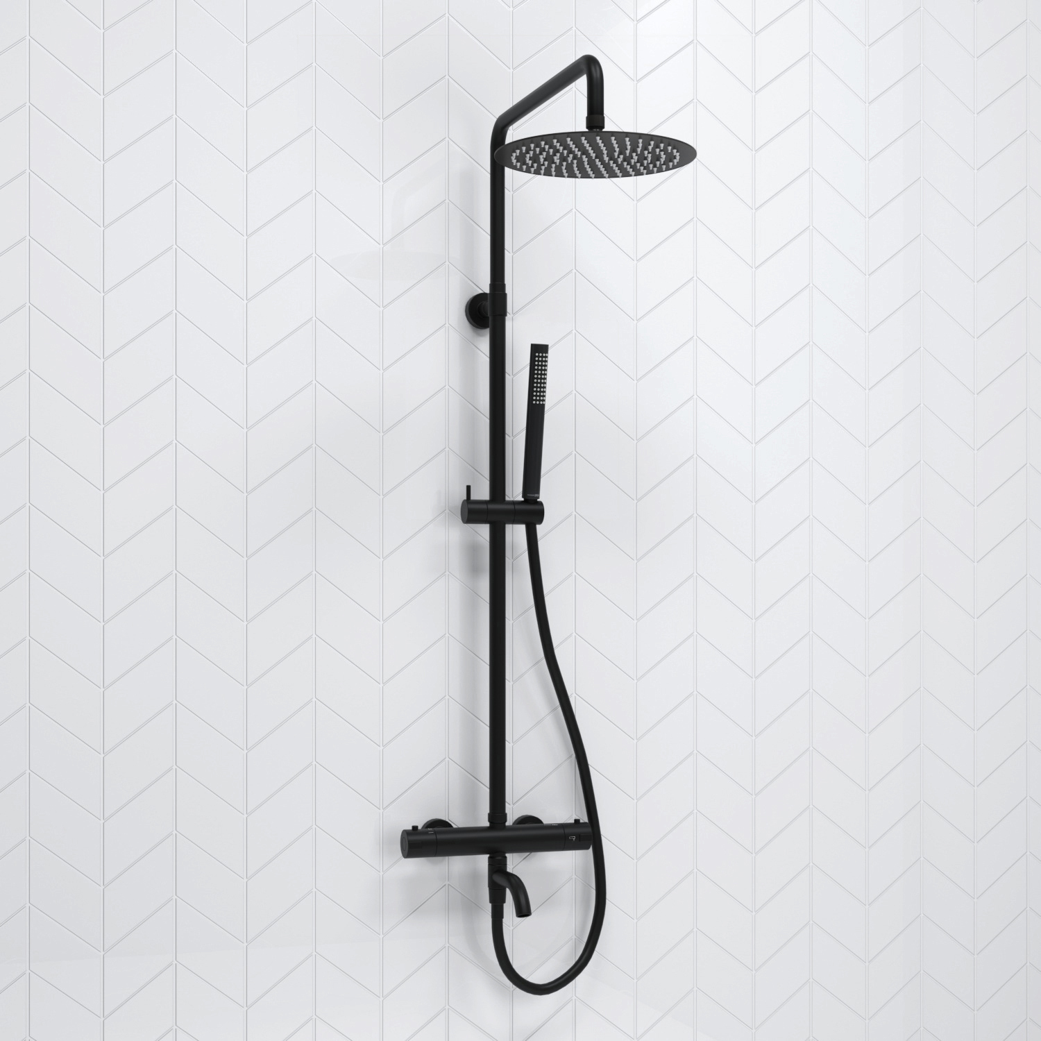 Душевая стойка с термостатом и выдвижным изливом WasserKraft A288.258.217.BM Thermo, материал - латунь, цвет - черный Soft-touch.
